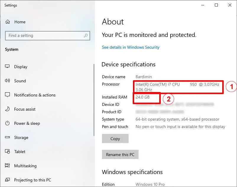 Der Tab System zeigt grundlegende Systeminformationen inklusive Prozessor und Arbeitsspeicher. Für Grafikdetails wechseln Sie zum Tab Anzeige: