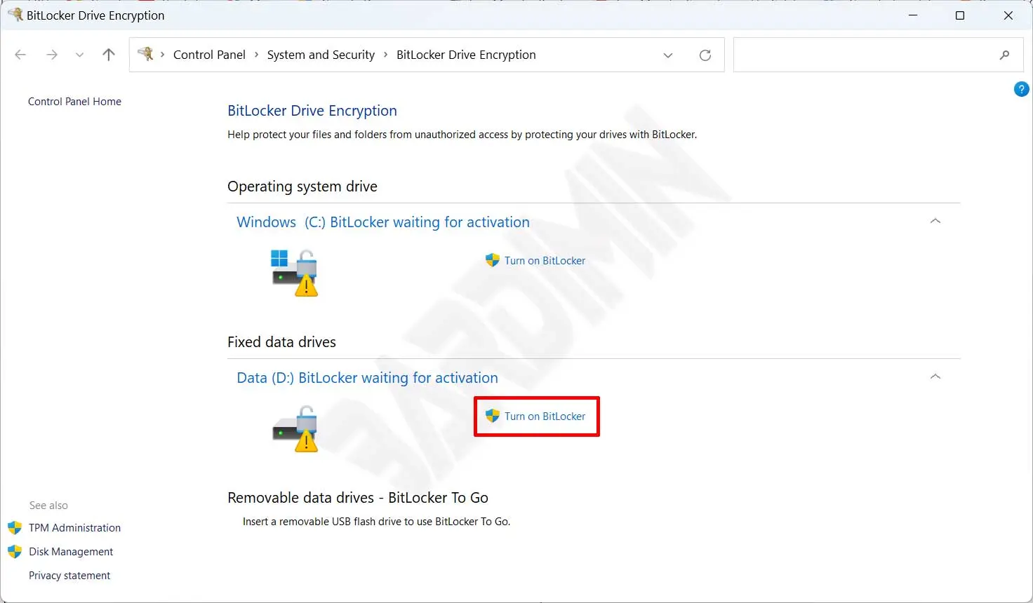 Aktivieren der BitLocker-Verschlüsselung in Windows 11
