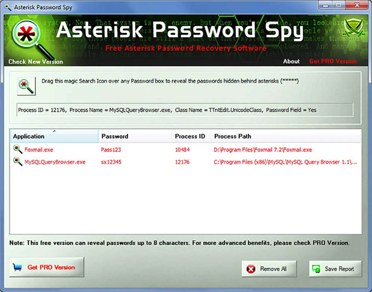 Mit Asterisk Password Spy können Sie schnell die durch Sternchen versteckten Passwörter aufdecken.