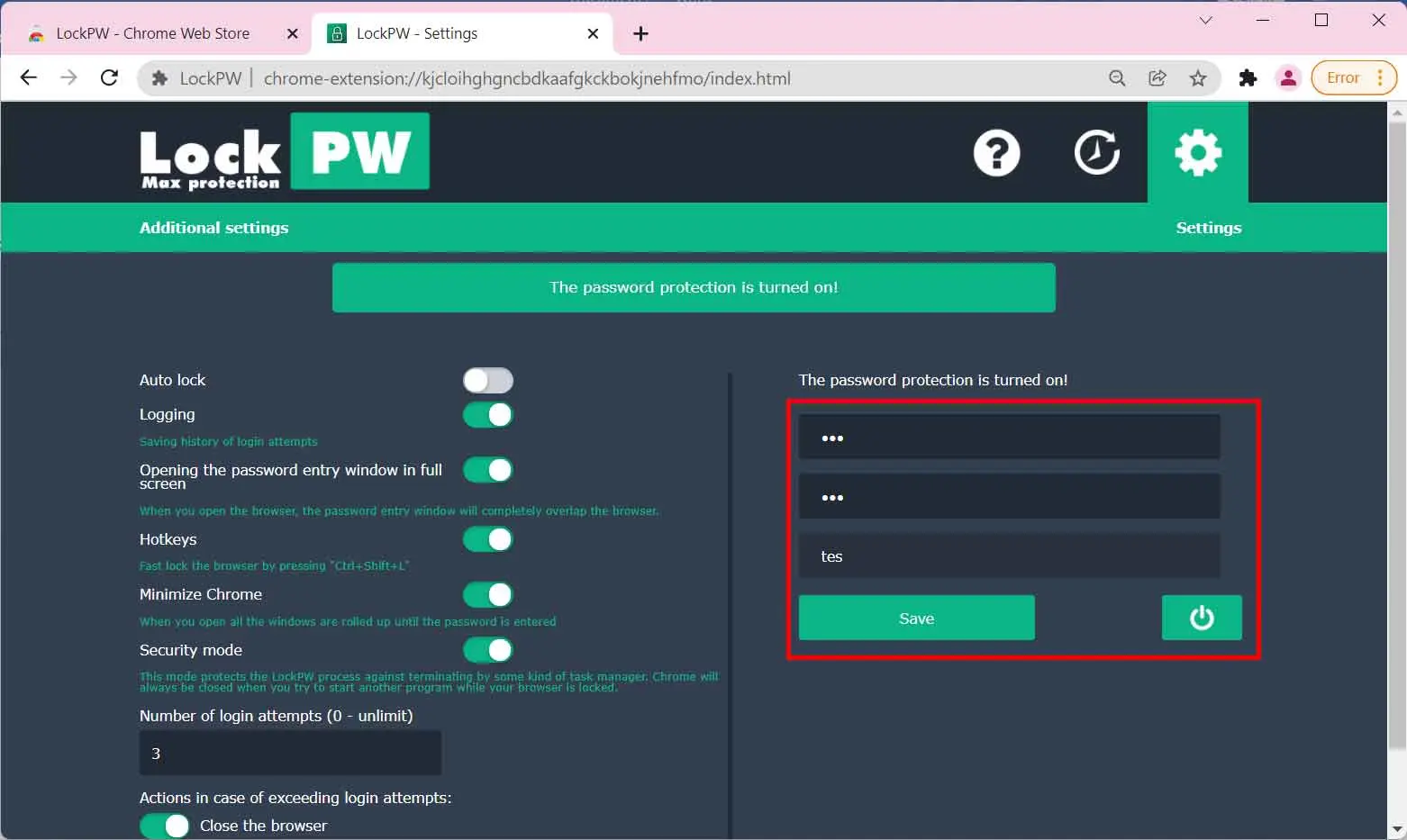 - Fügen Sie die Erweiterung LockPW zu Ihrem Chrome-Browser hinzu.