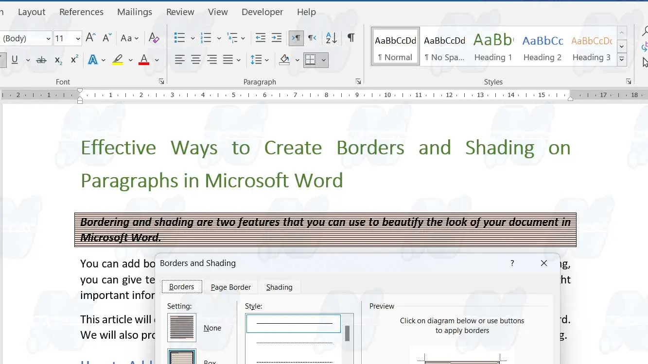 Gehen Sie folgendermaßen vor, um Rahmen und Schattierungen zu Absätzen in Microsoft Word hinzuzufügen: