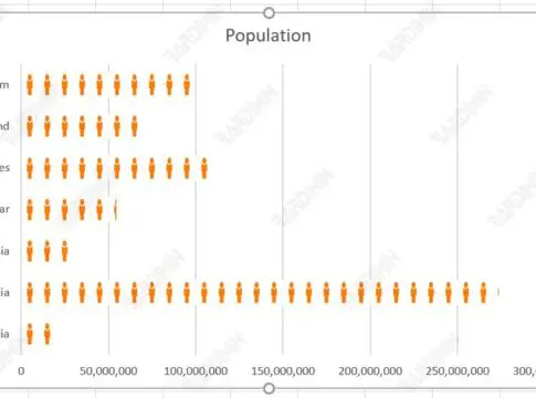 - Wählen Sie dann “Stack and Scale with” aus. Geben Sie unter “Units/Picture” die Werte ein, die jedes Bild darstellen sollen. In diesem Beispiel gibt Bardimin an, dass jedes Bild eine Bevölkerung von 10 Millionen darstellt.