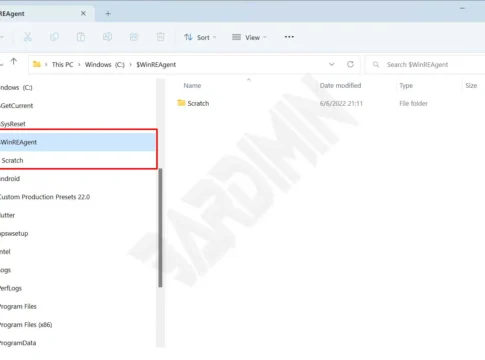 $WinREAgent ist ein Ordner, der standardmäßig versteckt ist. Um ihn zu sehen, ändern Sie die Einstellungen Ihres Datei-Explorers. Dieser Ordner ist nur ein leerer Ordner mit einem Unterordner namens „Scratch“, der ebenfalls leer ist.