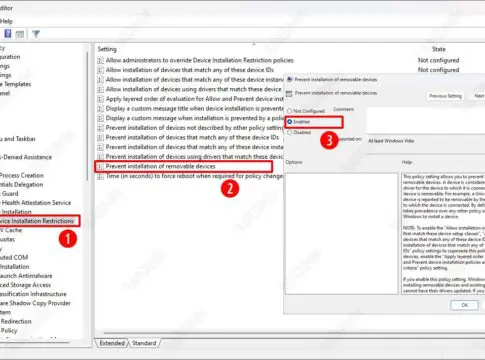 • Suchen Sie nach der Option “Prevent installation of removable devices.”