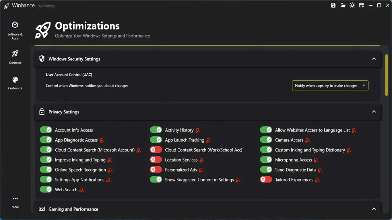 Mit einer einfachen und funktionalen Benutzeroberfläche ermöglicht WinHance den Benutzern, Systembereinigungen durchzuführen, Startprogramme einzurichten, unnötige Dienste zu deaktivieren und die Datenschutzhärtung durchzuführen, ohne dass tiefgreifende technische Kenntnisse erforderlich sind.