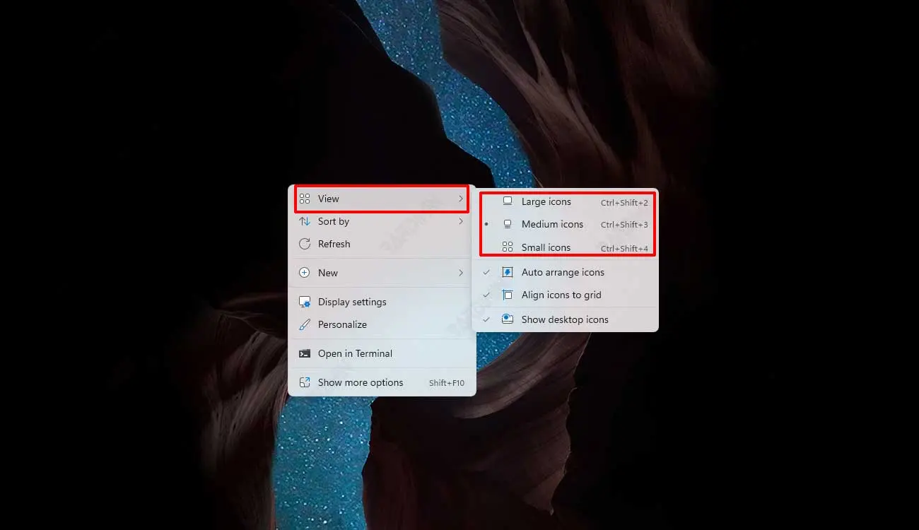 - Klicken Sie mit der rechten Maustaste auf den freien Speicherplatzauf dem Desktop und wählen Sie “View” aus.