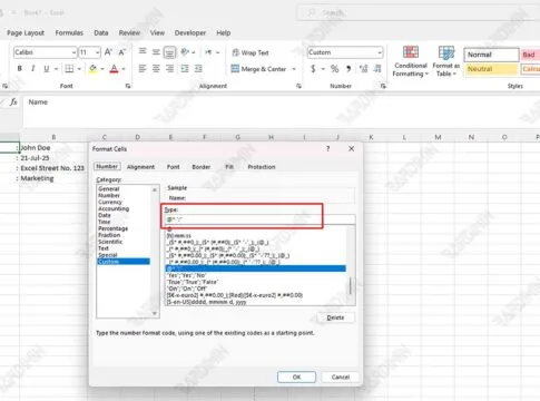 4. Geben Sie den folgenden Formatcode in das Feld Type ein: