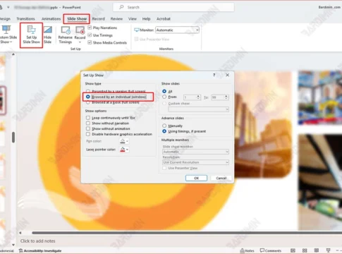 Für diejenigen unter Ihnen, die eine PowerPoint-Präsentation präsentieren möchten, ohne den Bildschirm vollständig zu sperren, kann die Bildschirmpräsentationsfunktion direkt in den Präsentationseinstellungen aktiviert werden. Mit dieser Funktion können Diashows in einem separaten Fenster statt im Vollbildmodus angezeigt werden, sodass Sie während der Präsentation weiterhin frei auf andere Apps zugreifen können.