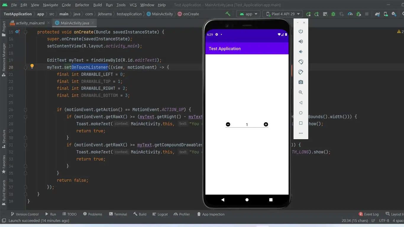 In MainActivity fügen Sie „OnTouchListener“ wie folgt hinzu