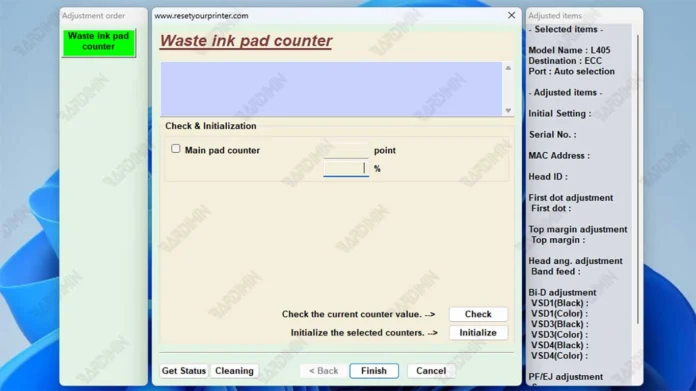 - After that, select the specific function for "Waste Ink Counter" or "Main Pad Counter".