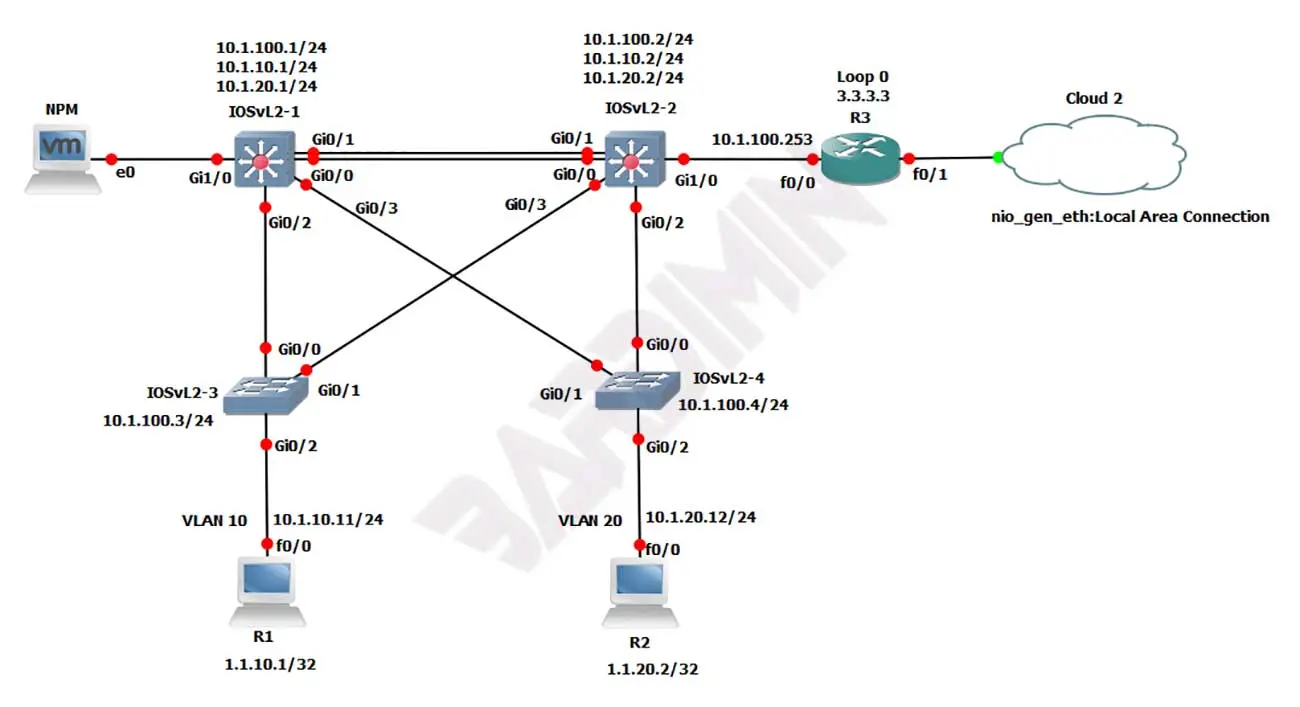 - Supports multiple switching options ( Etherswitch NM-ESW16 module, Layer 2 IOU/IOL image, IOSvL2 VIRL):