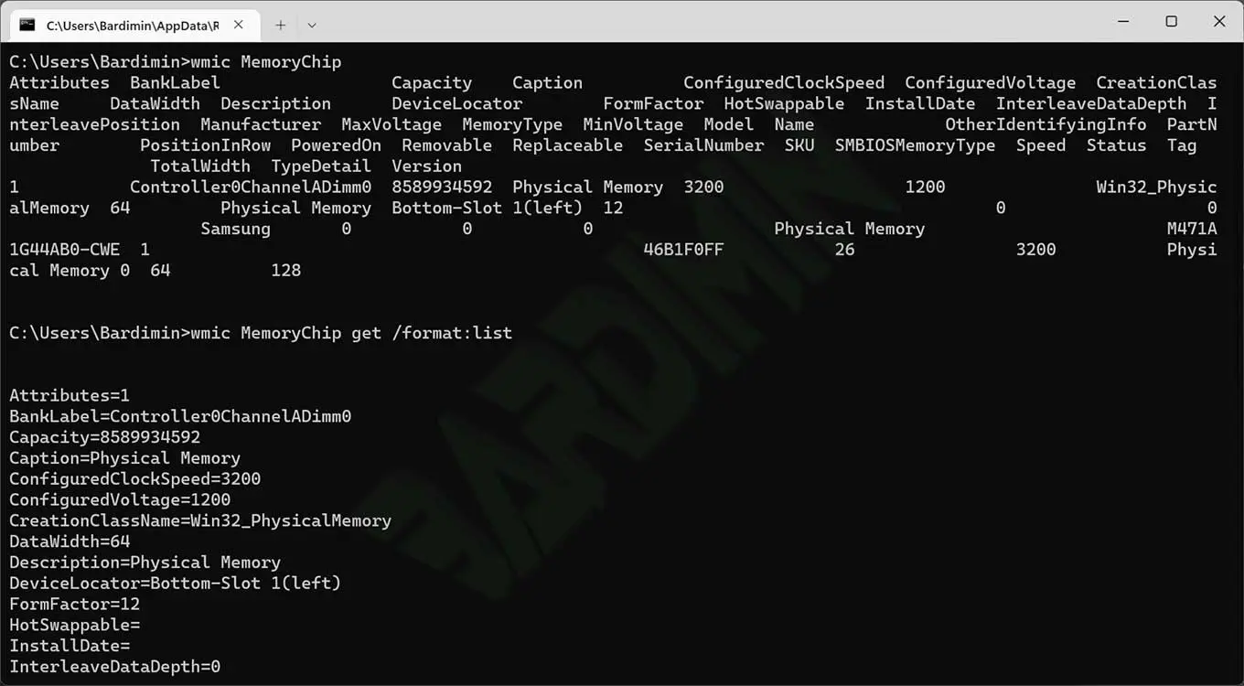 How to check RAM type (DDR, DDR2, DDR3, DDR4) with CMD wmic
