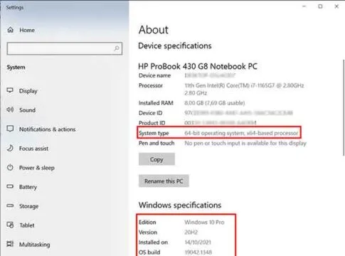 On the About page you can see information on the type of system whether x64 or x86 and you also get complete information on the version of Windows you are using at the bottom.