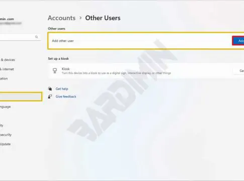 - Navigate to “Accounts > Other users“. Then on “Add other user“, click the “Add account” button.
