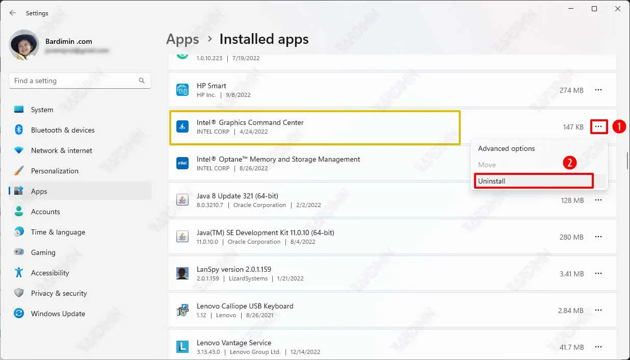 - Find the driver you want to uninstall and click the “triple dot” button on the right. Select “Uninstall” to remove it.