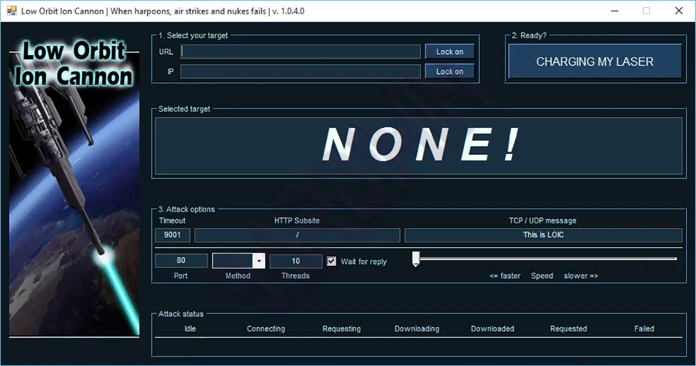 Low Orbit Ion Cannon (LOIC) is an open-source network stress and denial of service testing application written in C#.