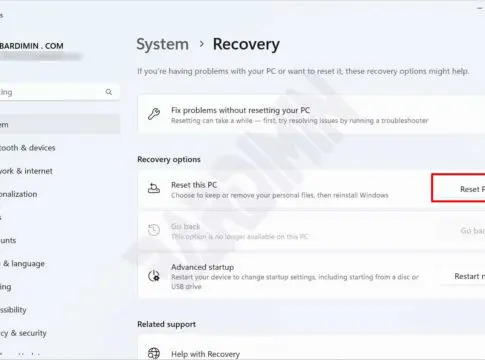 - When you are ready to reset the computer, click the ” Reset ” option.