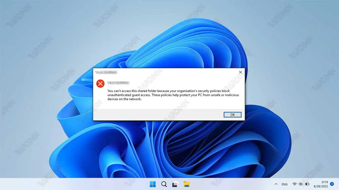 Sin embargo, a veces los usuarios encuentran el error “You can’t access this shared folder because your organization’s security policies”. Este mensaje indica que la directiva de seguridad de su organización o la configuración de Windows bloquean el acceso de invitado a la carpeta compartida.