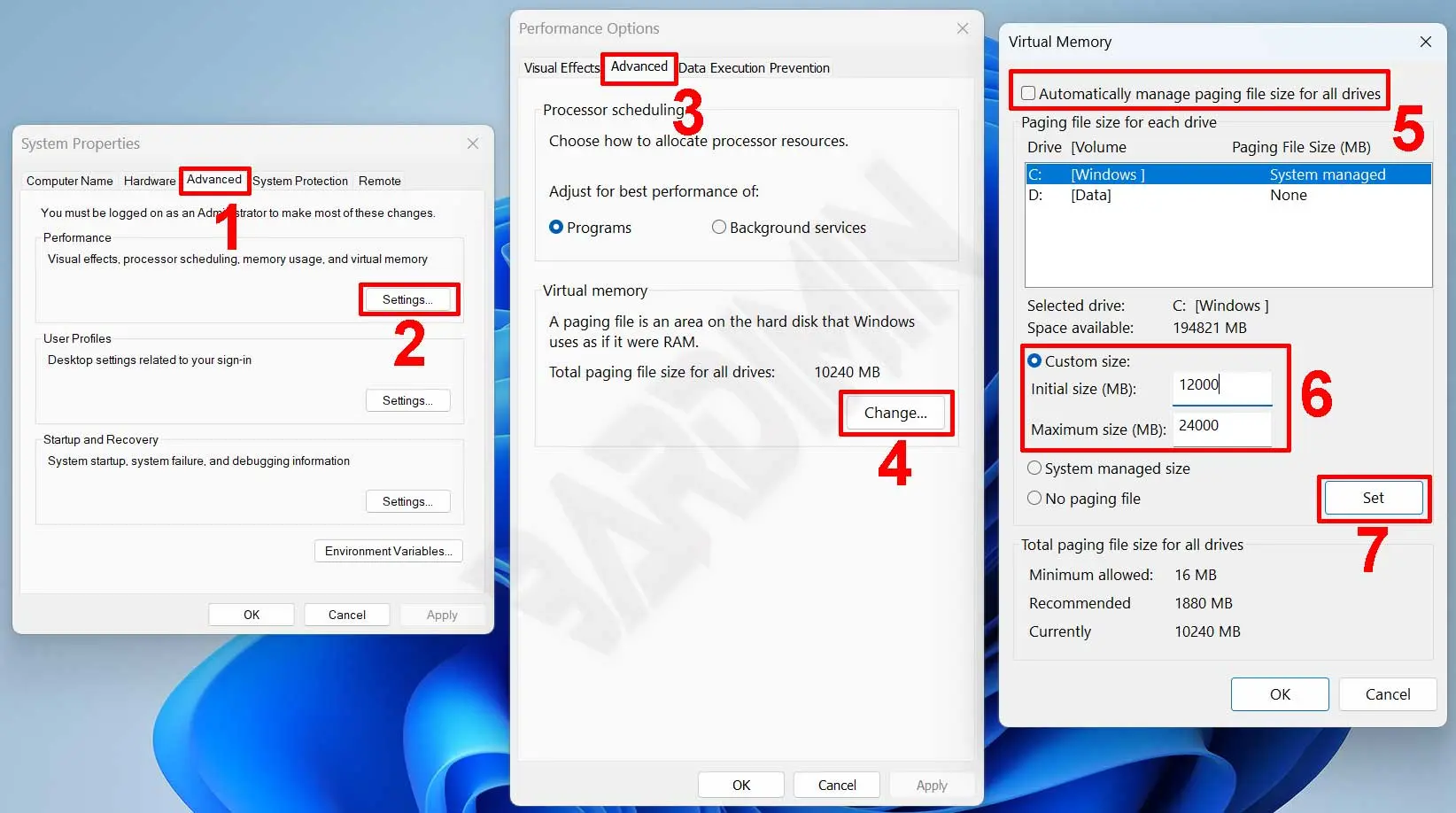 Aumentar la memoria virtual (archivo de paginación) Windows 11