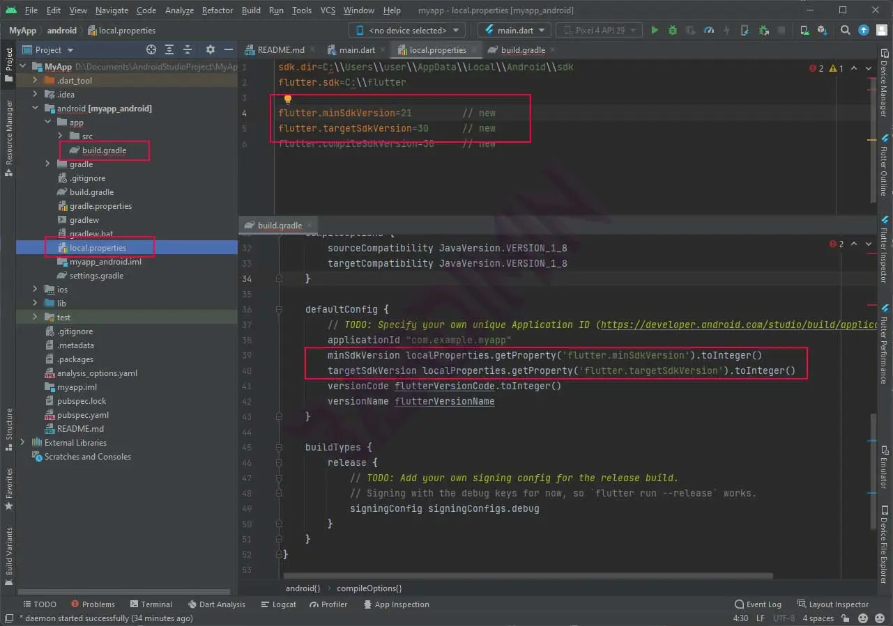 targetSdkVersion localProperties.getProperty('flutter.targetSdkVersion').toInteger()
