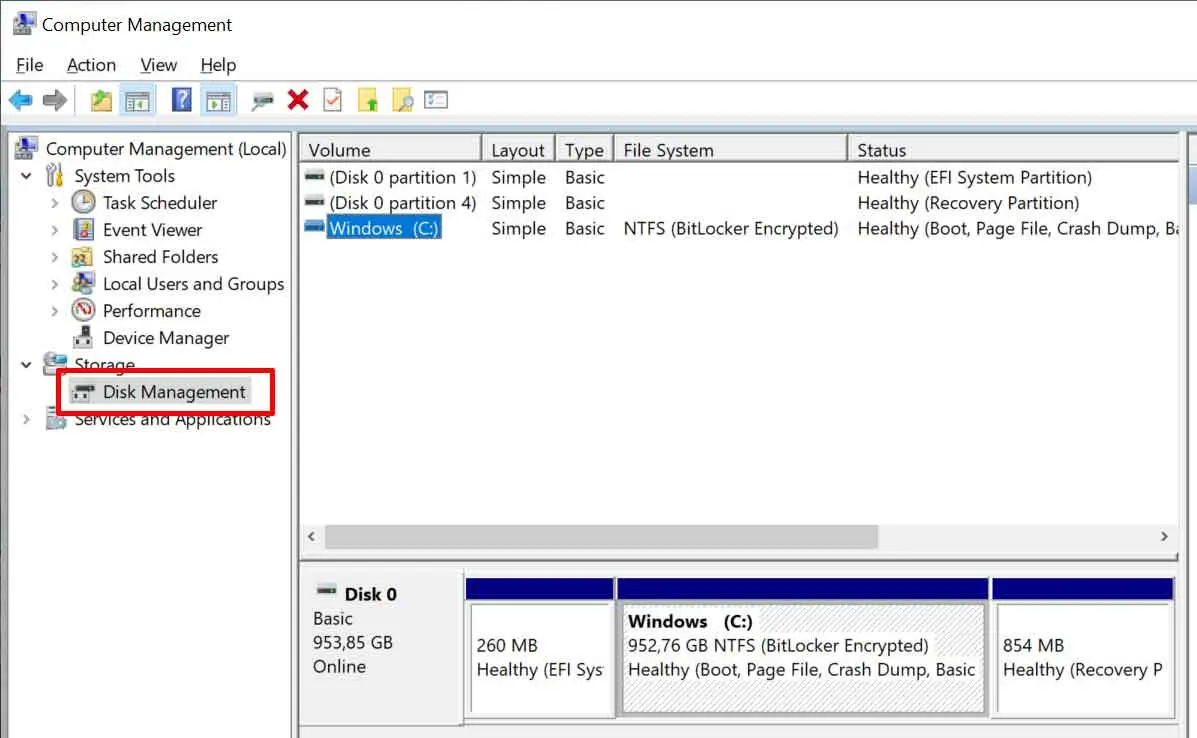 - En Gestión de ordenadores, seleccione «Disk Management«.