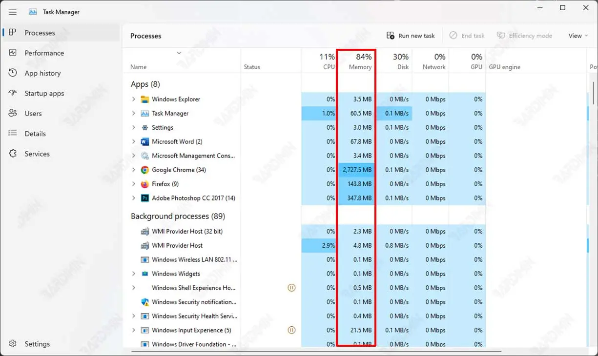Demasiadas aplicaciones instaladas pueden conducir a un alto consumo de RAM. Porque muchas aplicaciones grandes como Adobe, Corel y otras cuando lo instale también incluirán servicios y ejecutarán servicios cuando el equipo esté encendido. Lo hacen para garantizar que la aplicación funcione sin problemas.