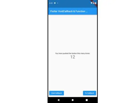 A continuación, ejecuta el proyecto. En el emulador verás que hay dos botones: «VoidCallback» y «Fx Callback.