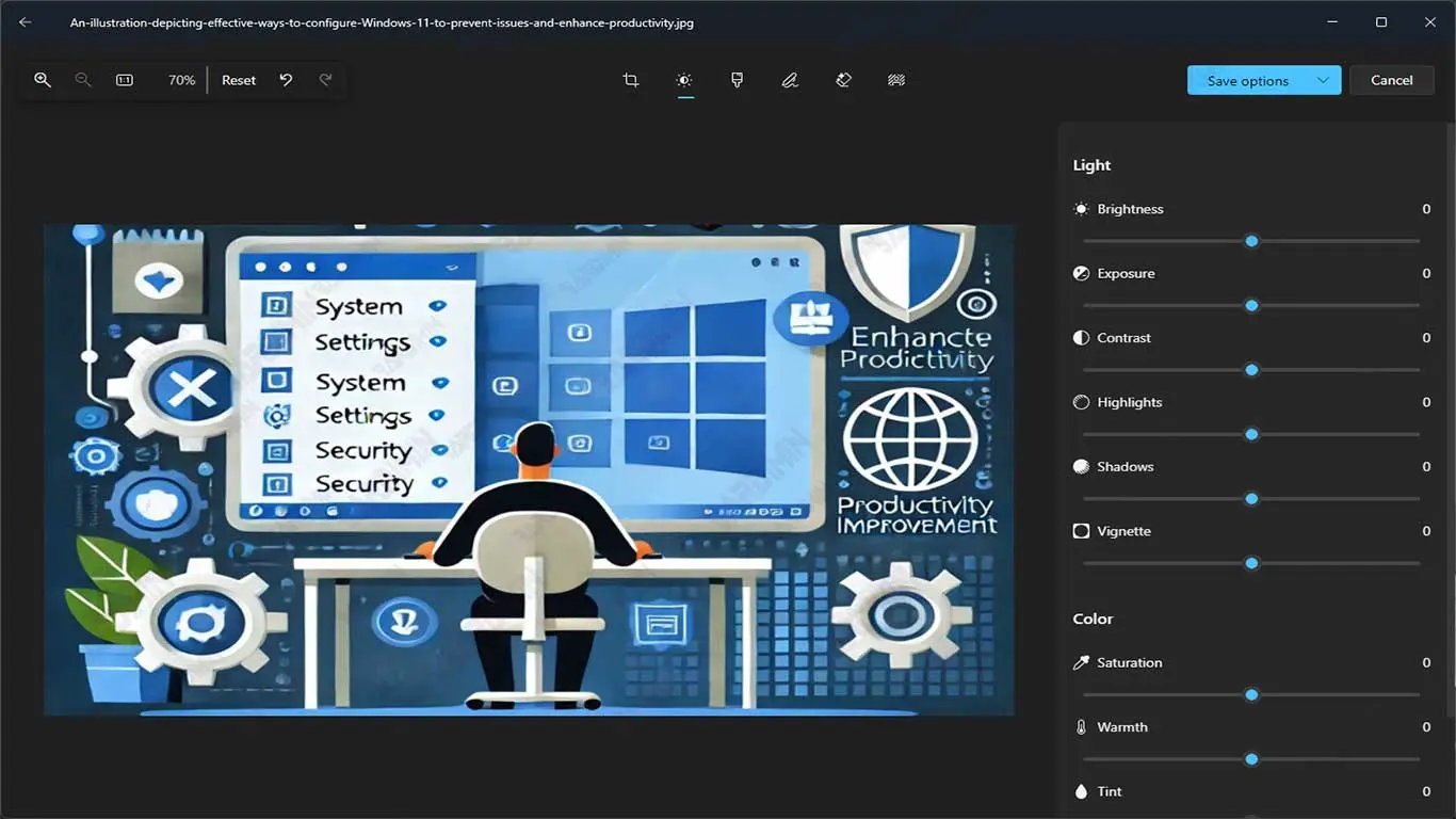 Una forma fácil y eficiente de arreglar imágenes es usar la aplicación Photos en Windows 11. Como aplicación integrada, Photos no solo es fácilmente accesible, sino que también viene con una variedad de herramientas de edición que permiten a los usuarios retocar imágenes de forma automática o manual sin requerir grandes habilidades técnicas.