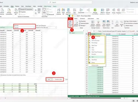 - Para cambiar el formato de datos de una columna, haga clic en el icono del encabezado de columna y seleccione un formato de datos.