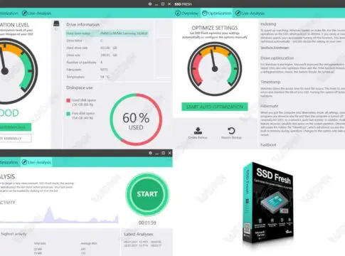 SSD Fresh mejora el rendimiento de SSD al optimizar, evaluar y eliminar servicios ineficaces, acceso de escritura y otras configuraciones de Windows específicas de SSD.