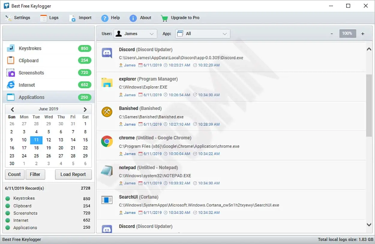 Best Free Keylogger est la solution pour surveiller ce que font vos enfants ou vos employés sur leurs ordinateurs. L’une des caractéristiques intéressantes de ce keylogger est la fonction « Parental Controls ». Grâce à cette fonction, vous pouvez non seulement enregistrer ou surveiller l’utilisation de votre PC, mais aussi bloquer les sites pornographiques et limiter l’utilisation d’Internet.