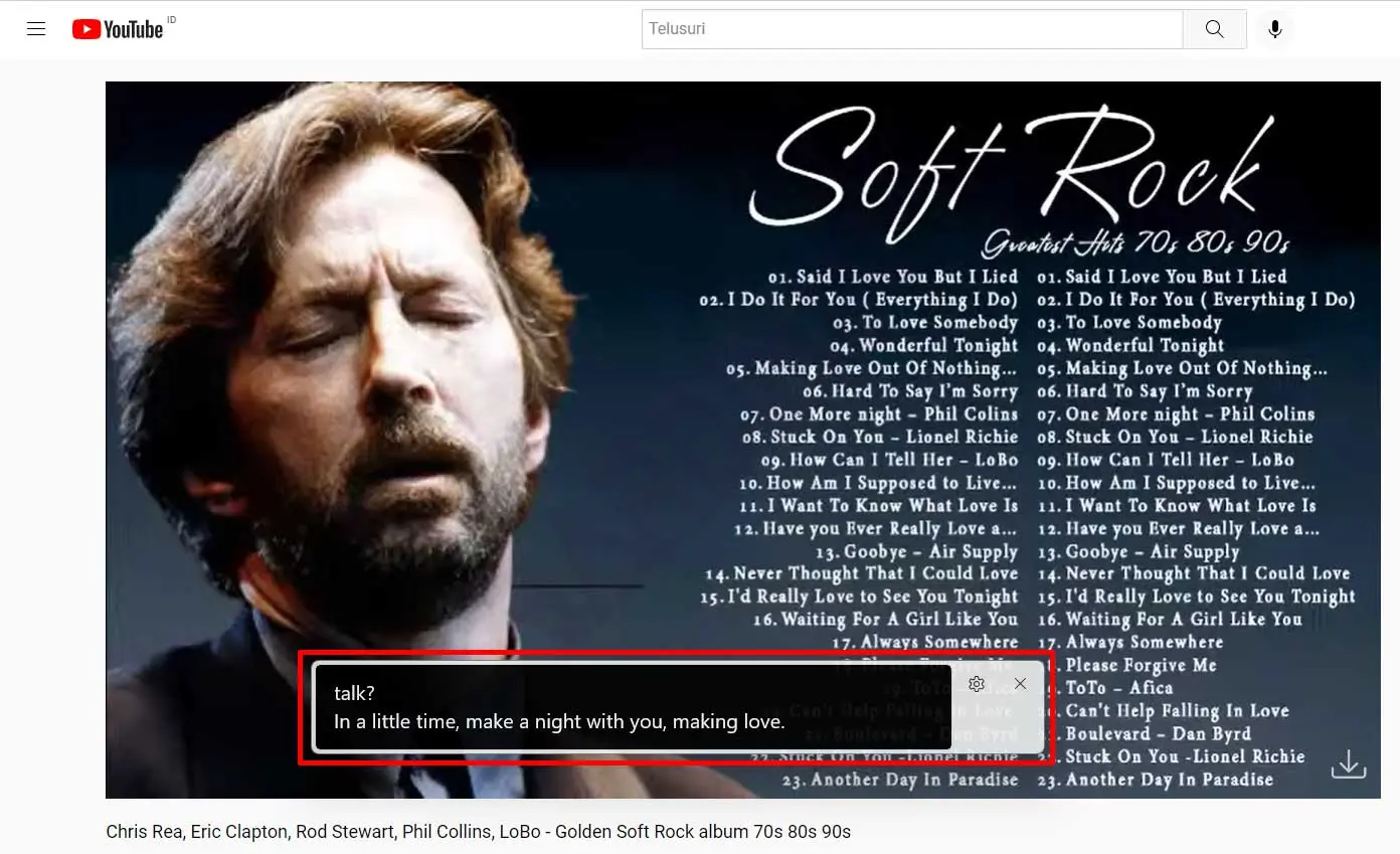 - Exemple. Ouvrez la chanson sur YouTube et activez les sous-titres en direct comme suit