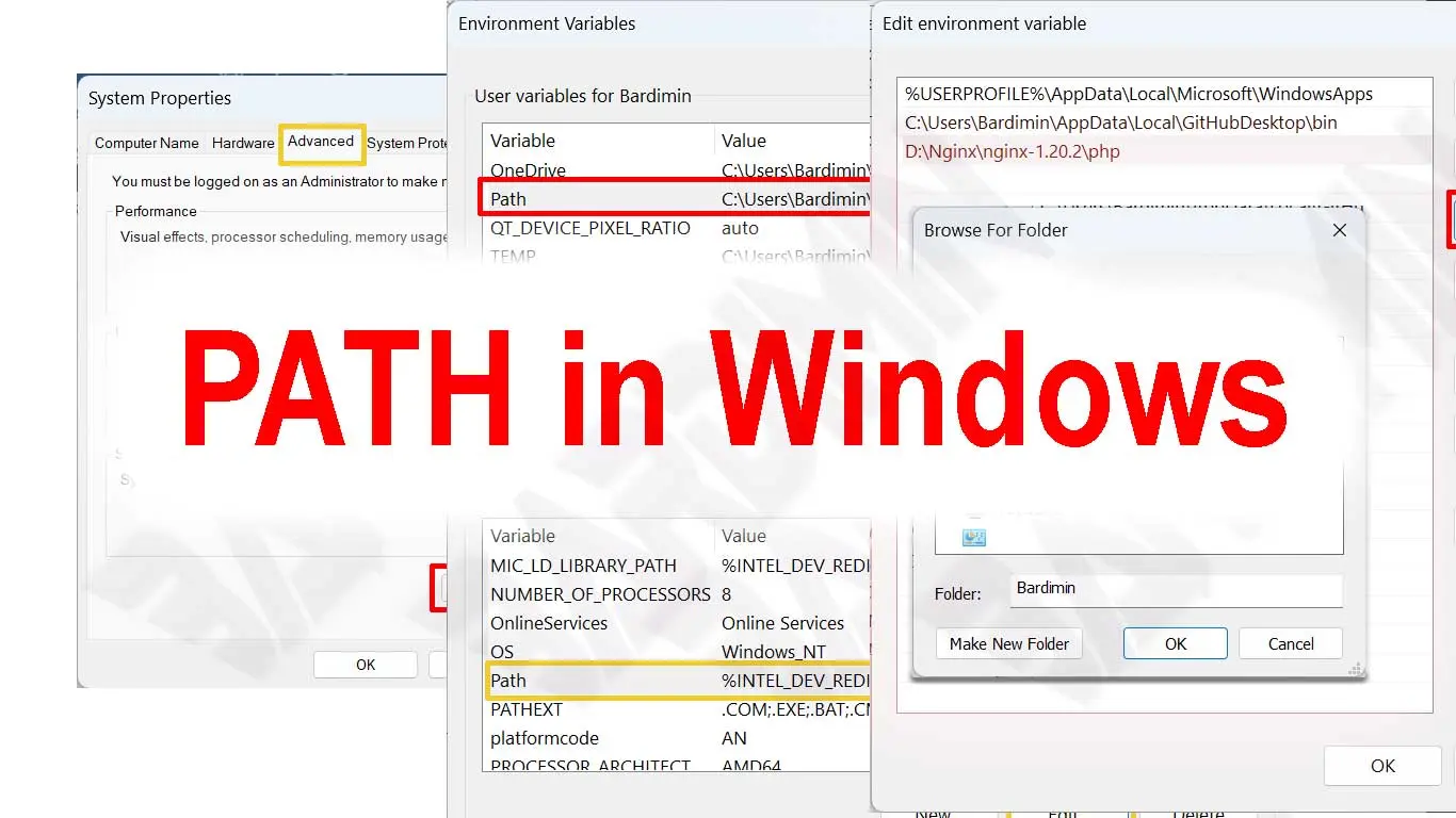 La variable système PATH peut être gérée à l’aide de l’utilitaire Système du panneau de configuration de Windows. Il n’est généralement pas nécessaire de modifier la variable PATH du système pour les ordinateurs fonctionnant sous Windows.