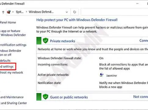 - Sélectionnez « Advanced settings » dans la fenêtre Windows Defender Firewall.