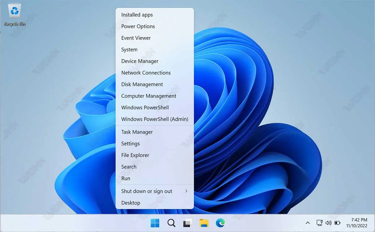 Menu Power User que vous pouvez ouvrir ou accéder des manières suivantes :