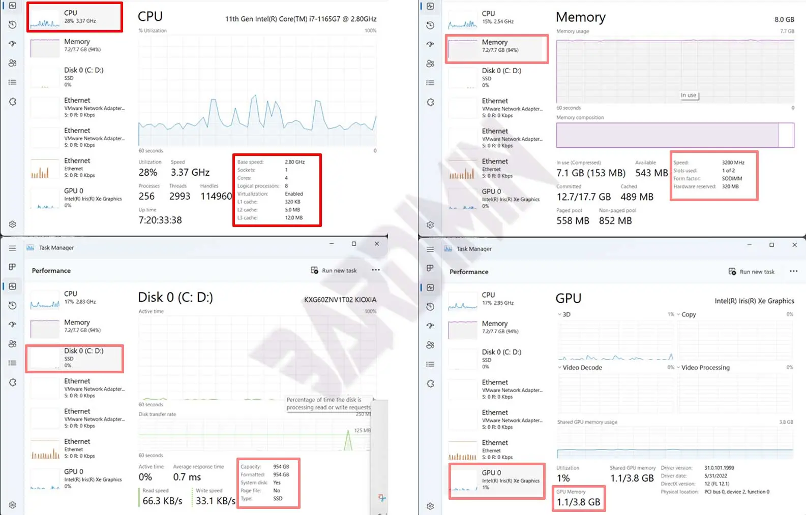 Vous pouvez utiliser ces outils pour vérifier les spécifications du processeur, la RAM installée, la mémoire et le modèle de carte graphique (VGA / GPU), la capacité et le modèle de stockage (SSD / HDD), etc.