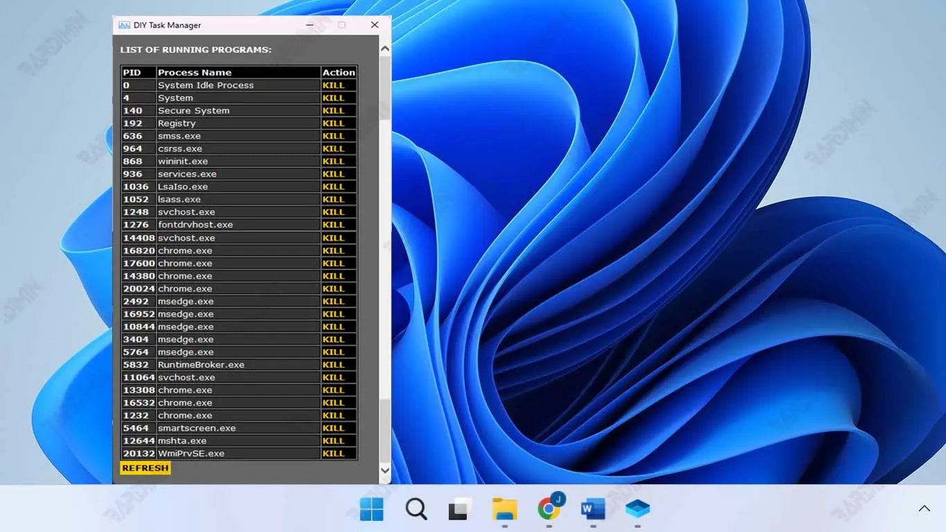 t = msgbox("Are you sure killing PID " & pid & "?",36,"DIY Task Manager")