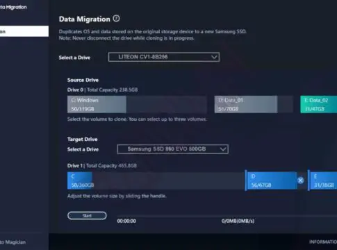 Samsung Data Migration aide les utilisateurs à migrer rapidement, facilement et en toute sécurité toutes leurs données – y compris leur système d’exploitation actuel, leurs logiciels d’application et leurs données utilisateur – des dispositifs de stockage existants (par exemple, les disques durs) vers leurs nouveaux disques SSD de Samsung.