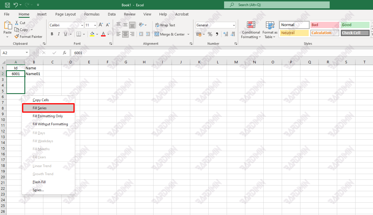 Default Fill Series pada Microsoft Excel 2021 berbeda dengan Excel versi sebelumnya. Pada Excel versi 2021, anda gunakan tombol kanan mouse untuk menyeretnya. Sedangkan pada Excel sebelumnya, gunakan tombol kiri mouse.
