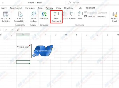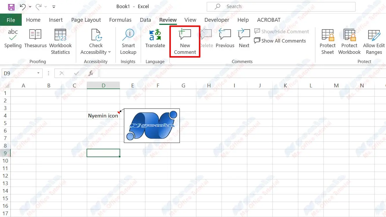 - Klik tab Review di ribbon, lalu klik New Comment. Ini akan menambahkan komentar kosong ke sel yang dipilih.