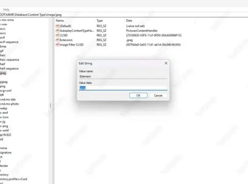 - Di kotak Value data, hapus .jfif dan ganti dengan .jpg.