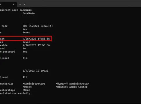 Memeriksa perubahan password terakhir dengan menggunakan CMD dapat Anda lakukan dengan menggunakan “Net”. Perintah ini memungkinkan Anda untuk mengatur akun klien dan memeriksa perubahan kata sandi terakhir Anda dan semua klien lain pada PC Anda dengan menggunakan akun admin.