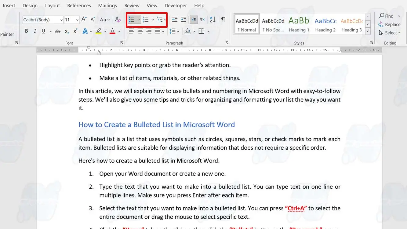 Berikut adalah cara membuat daftar Bullet di Microsoft Word: