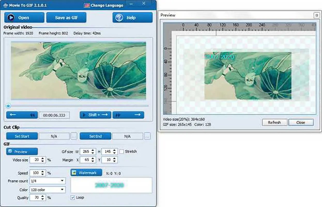Movie To GIF adalah aplikasi konverter video ke animasi GIF dengan UI yang mudah digunakan.