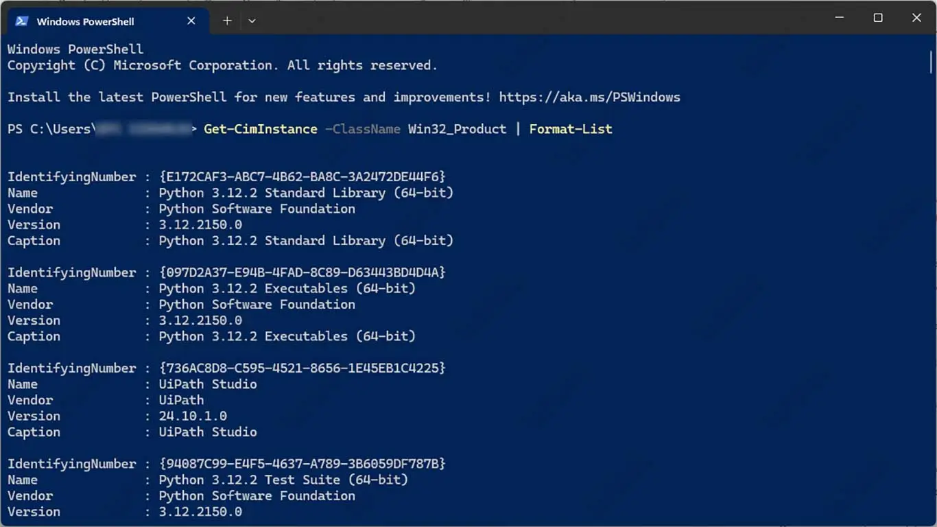 Get-CimInstance -ClassName Win32_Product | Format-List