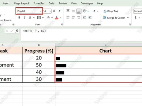 Se você deseja criar gráficos simples no Excel sem usar os recursos integrados do gráfico, métodos alternativos usando funções REPT e fontes decorativas como Playbill podem ser uma solução criativa. Essa técnica é adequada para criar gráficos de barras horizontais baseados em texto que permanecem visualmente atraentes e fáceis de entender.
