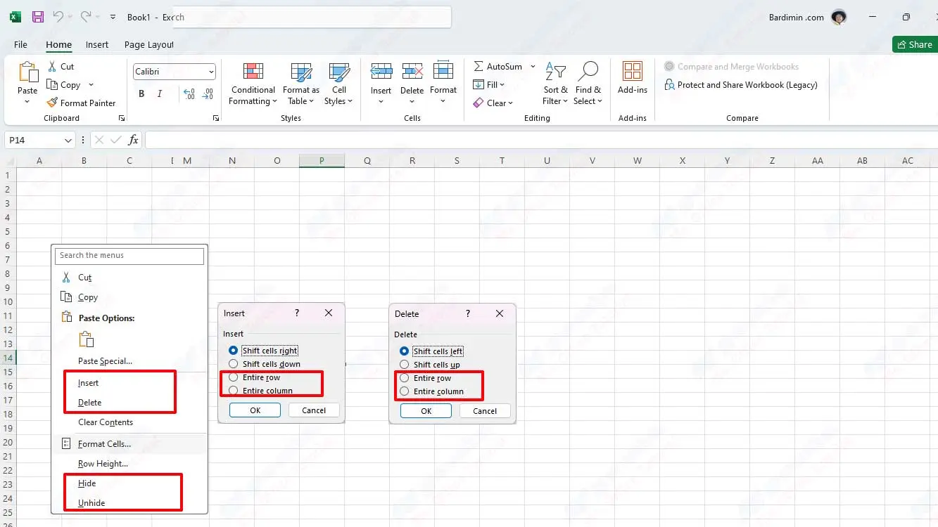Esse método é a maneira mais comum e fácil de adicionar linhas ou colunas no Excel. Aqui estão os passos:
