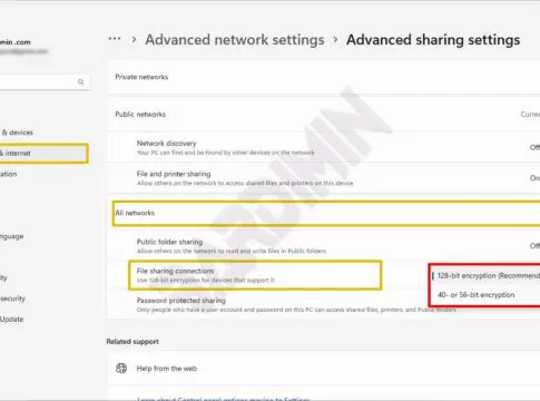 - Modifique as configurações de criptografia do compartilhamento de arquivos.