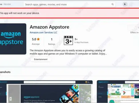 Você pode instalar a Amazon Appstore por meio da Microsoft Store. No entanto, você pode descobrir que não pode instalar a Amazon Appstore no Windows, exibindo a mensagem de erro “This App Will Not Work on Your Device“.