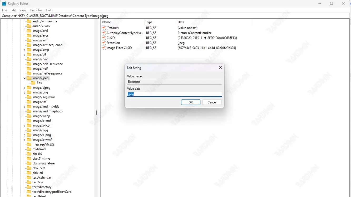 - Na caixa Value data, exclua-a .jfif e substitua-o por .jpg.